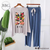 White Flower And BTS Shirt Short Sleeves T Shirt And High Waist Wide Pants