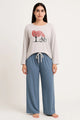 Add some fun to bedtime with this soft jersey 2pc that features a printed top and matching bottoms. The top and pants are done in a relaxed fit to keep you extra comfortable