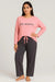 Add some fun to bedtime with this soft jersey 2pc that features a printed top and matching bottoms. The top and pants are done in a relaxed fit to keep you extra comfortable